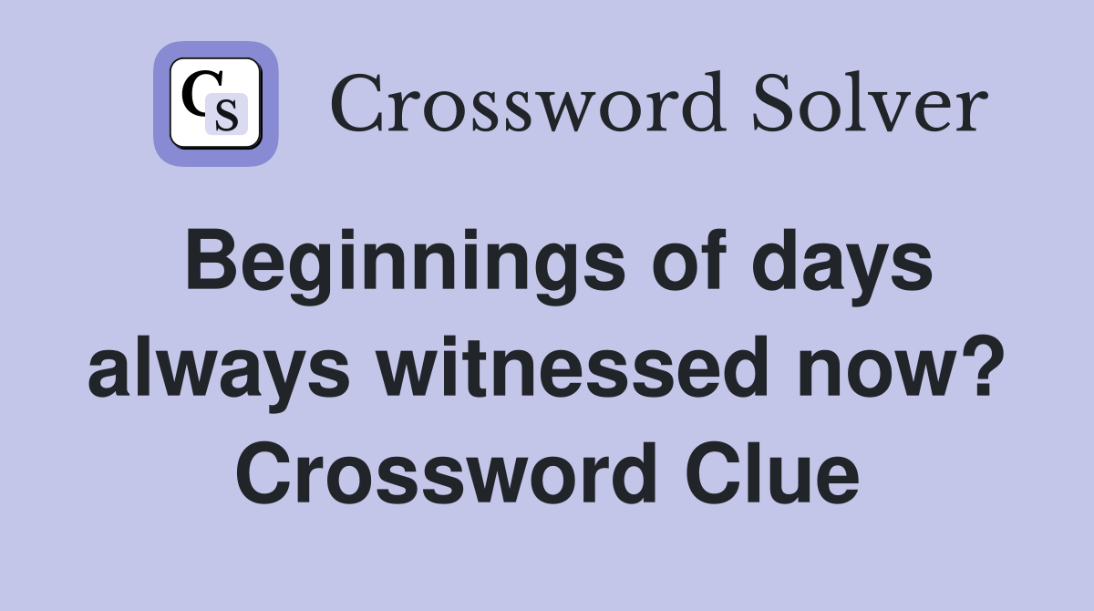 Beginnings of days always witnessed now? Crossword Clue Answers