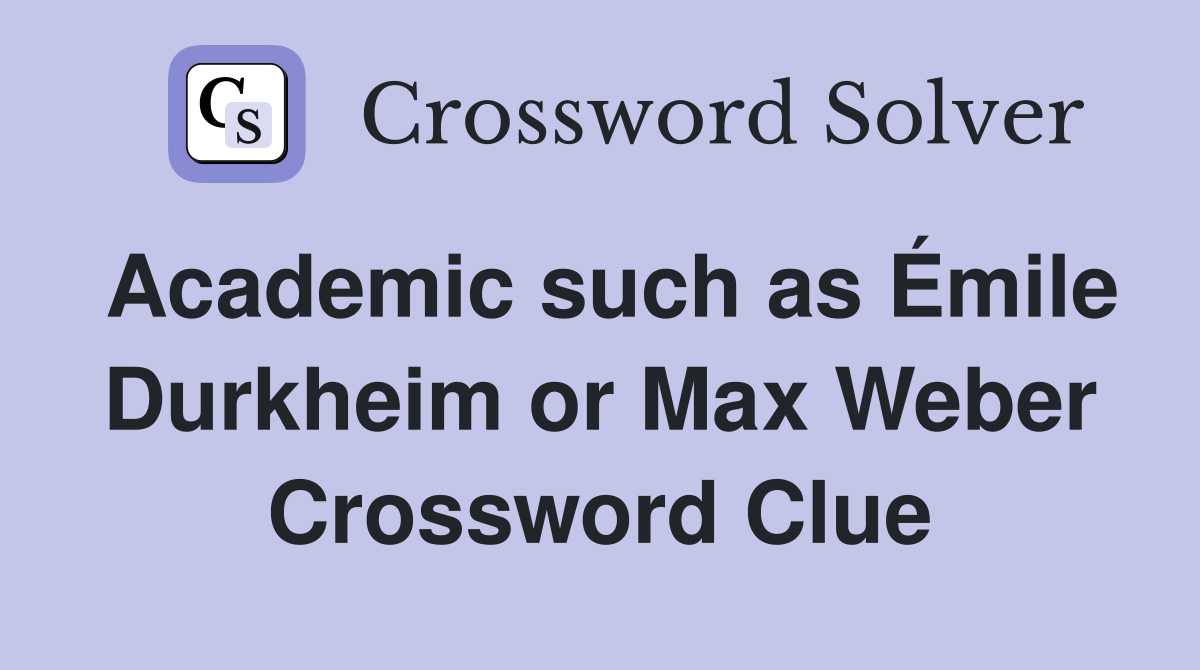 Academic such as Émile Durkheim or Max Weber Crossword Clue Answers