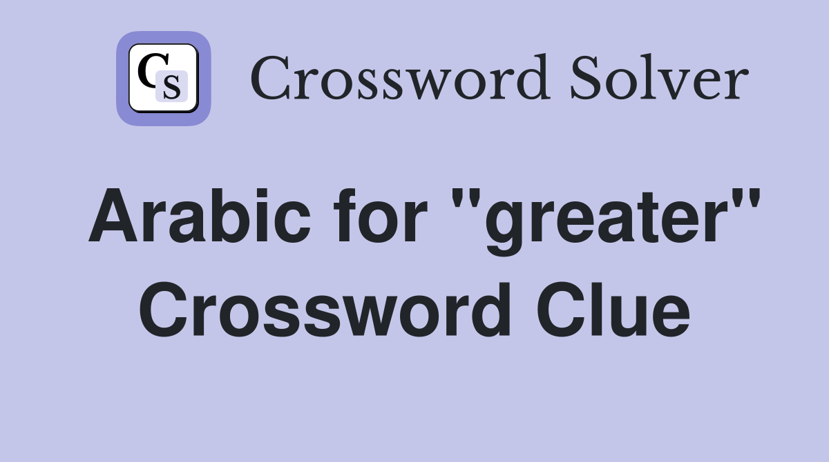 Arabic for quot greater quot Crossword Clue Answers Crossword Solver