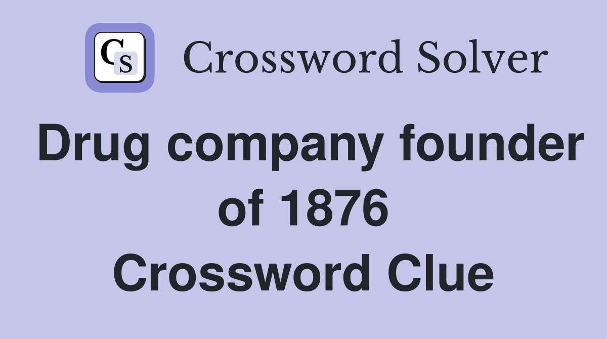 Drug company founder of 1876 Crossword Clue Answers Crossword Solver