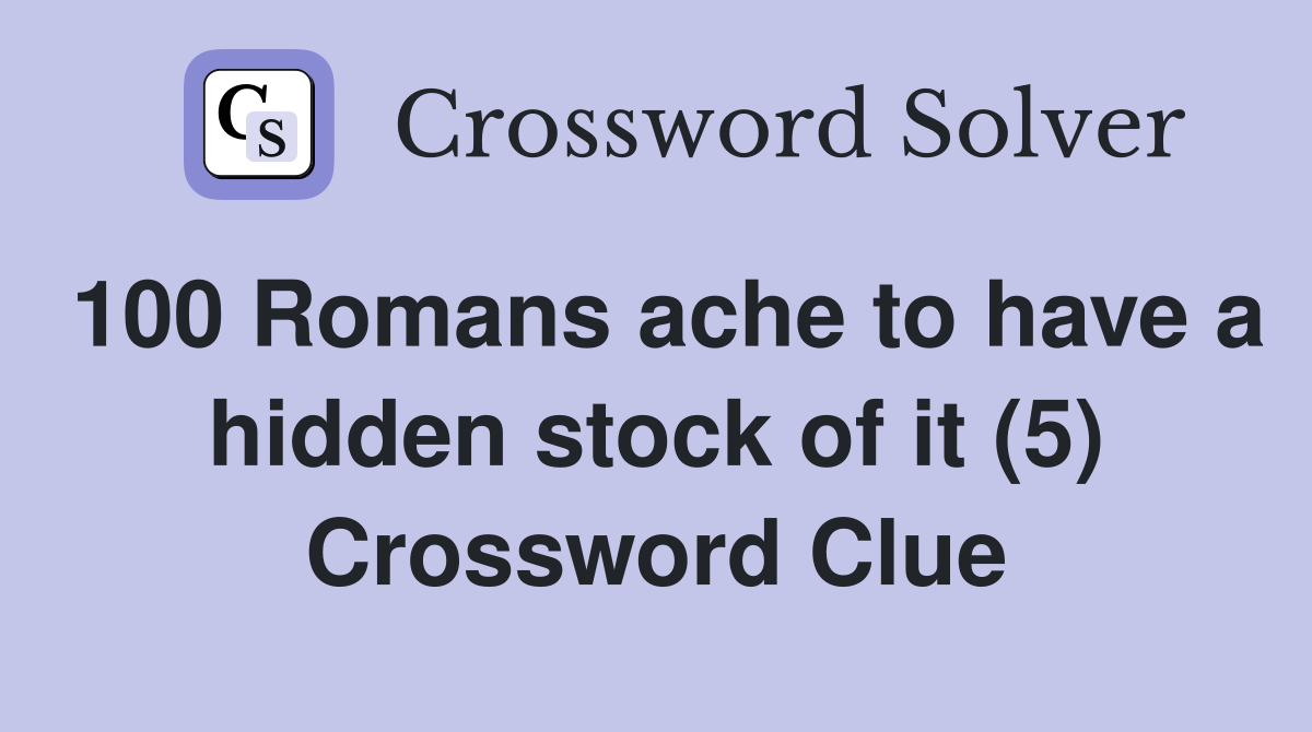 100 Romans ache to have a hidden stock of it (5) Crossword Clue