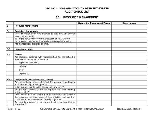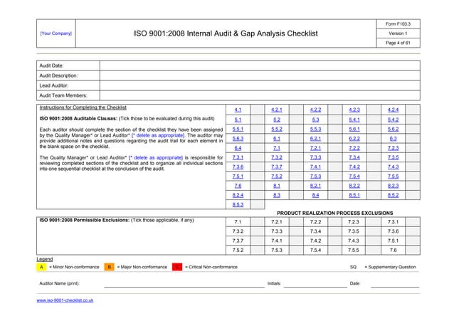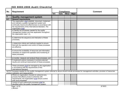 ISO 9000 2000 Checklist FDIS ASQ Section 702