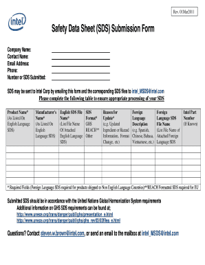 Fillable Online Safety Data Sheet (SDS) Submission Form Fax Email Print