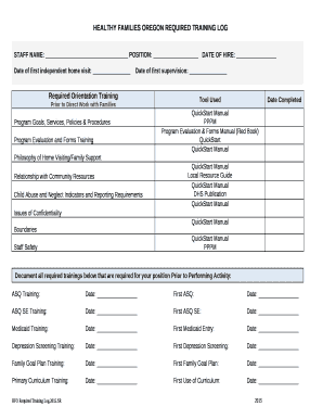 HEALTHY FAMILIES OREGON REQUIRED TRAINING LOG Doc Template pdfFiller