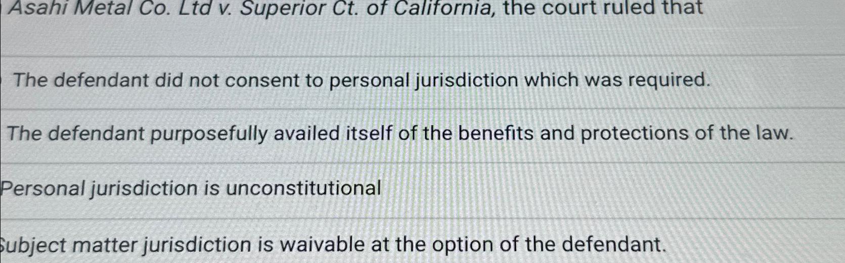 Solved Asahi Metal Co Ltd v Superior Ct of California Chegg com