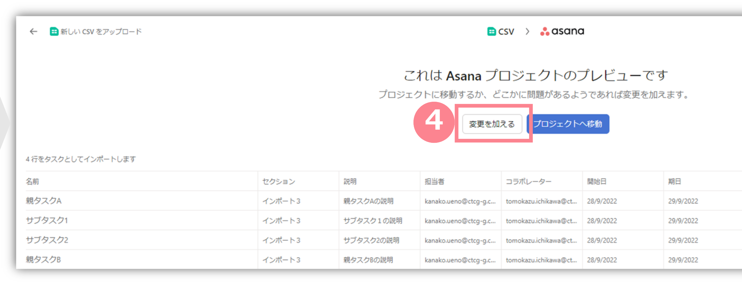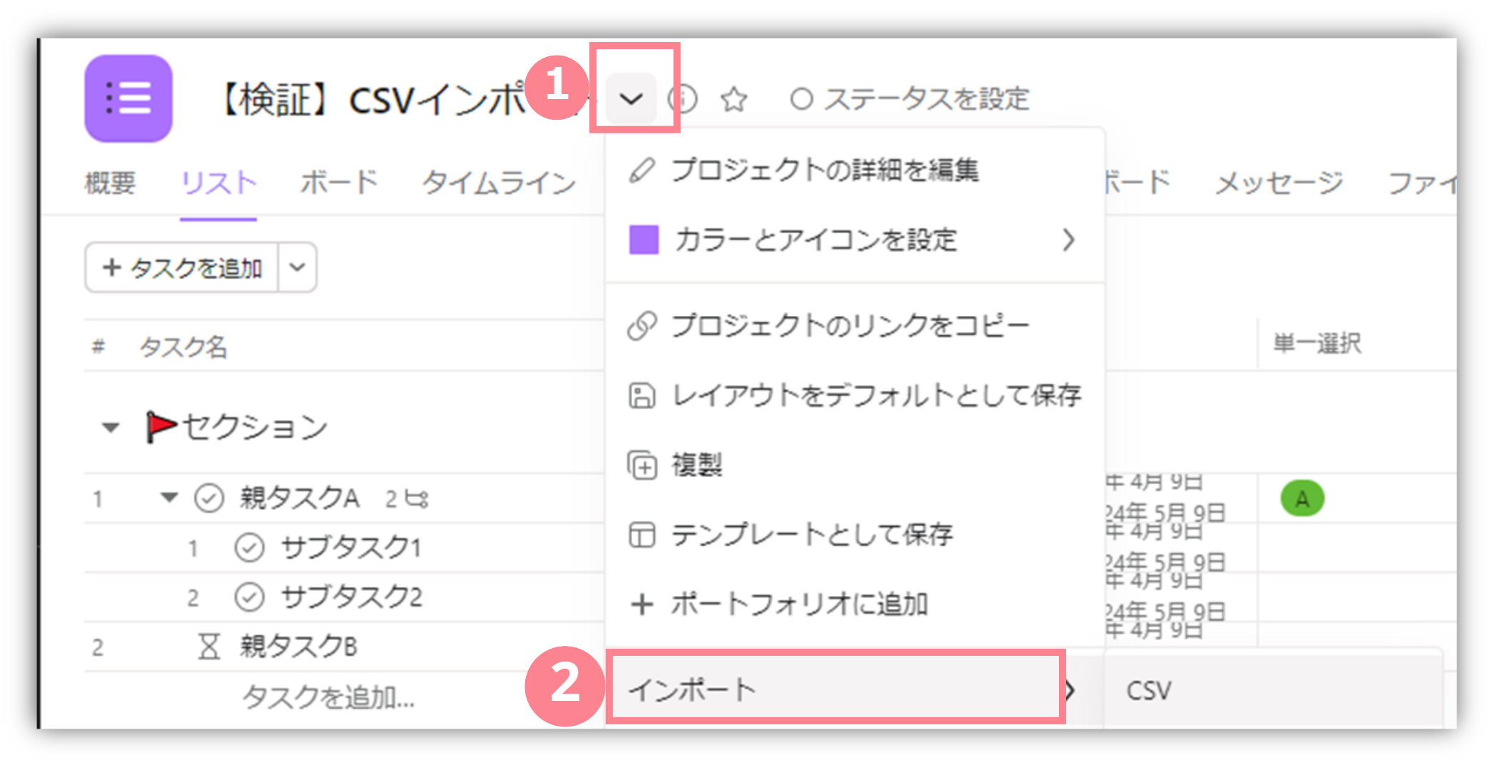 プロジェクトにCSVからタスクをインポートする CTCSP Asanaサポートセンター