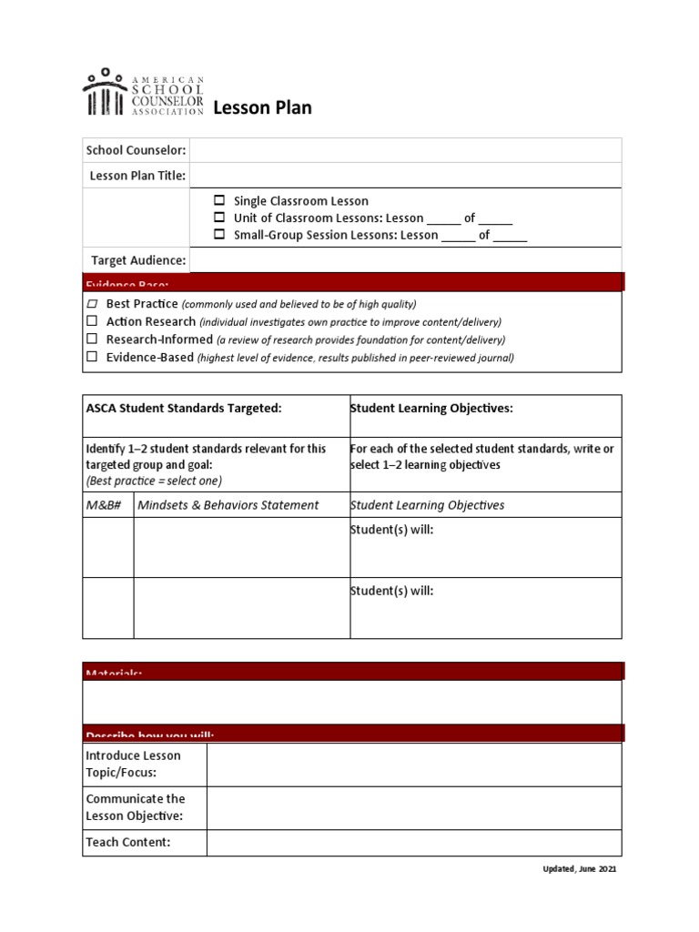 ASCA Model Lesson Plan Template in Word PDF Google Docs Pages