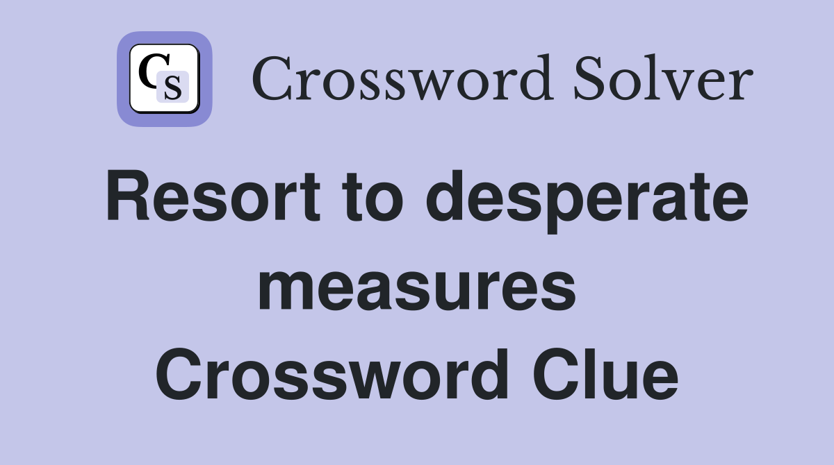 Resort to desperate measures Crossword Clue Answers Crossword Solver