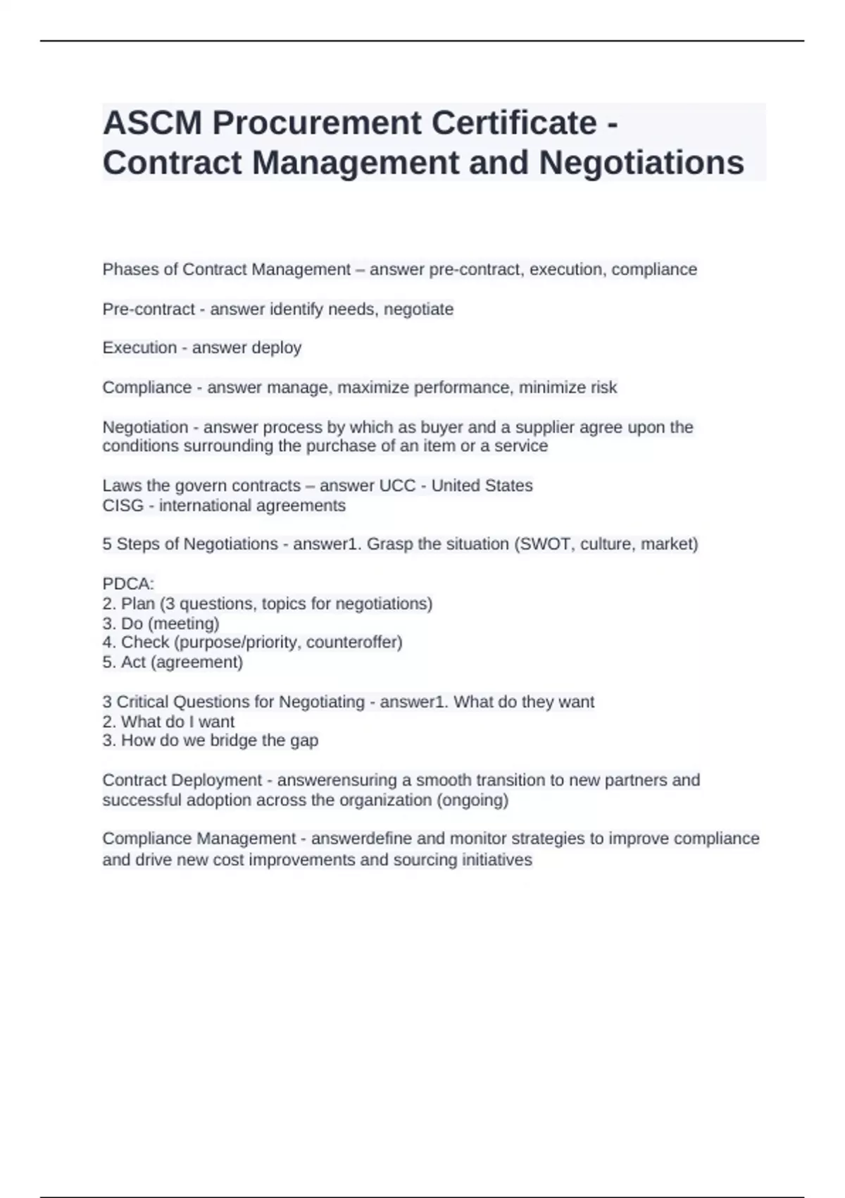 ASCM Procurement Certificate Contract Management and Negotiations