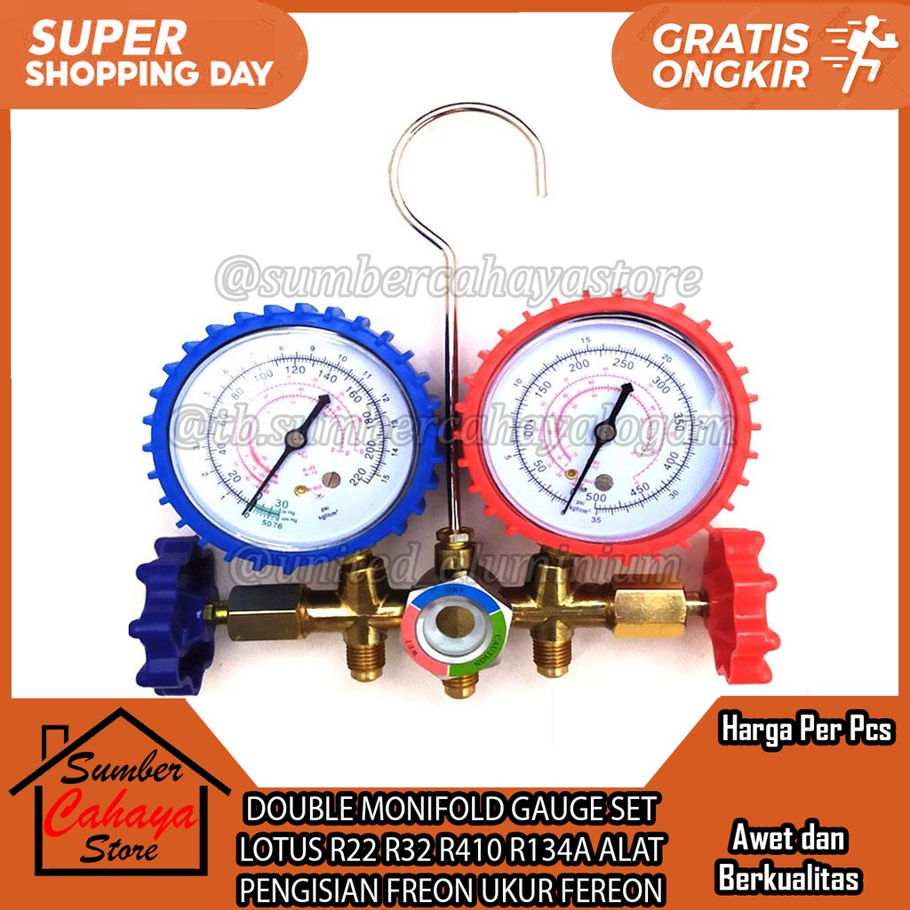 Double MONIFOLD GAUGE SET LOTUS R22 R32 R410 R134A FREON Filling Tool
