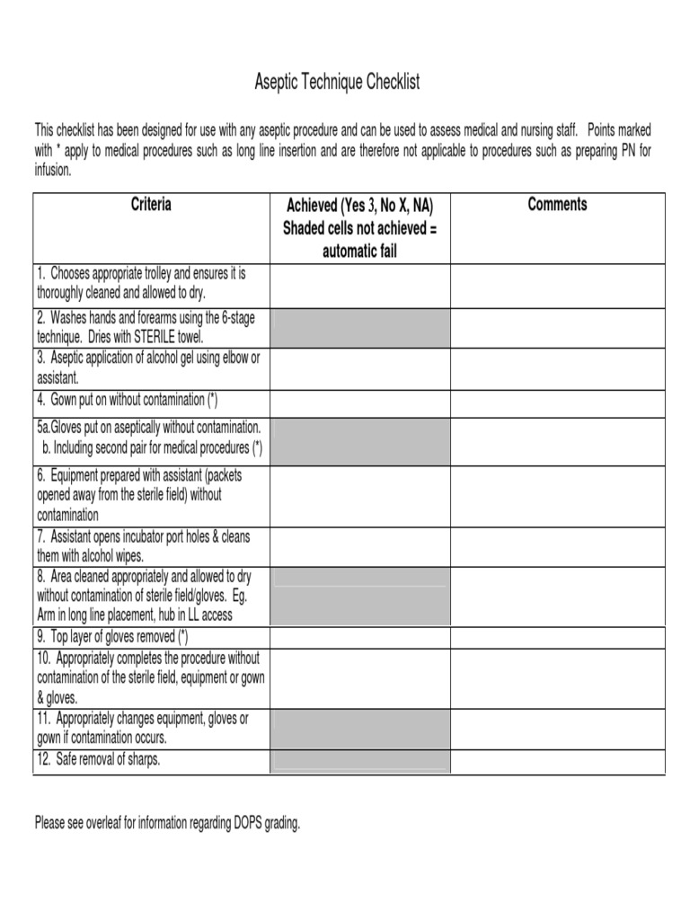 Aseptic Technique assessment form