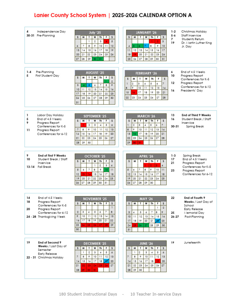 2025 2026 School Calendar PDF Observances Holidays