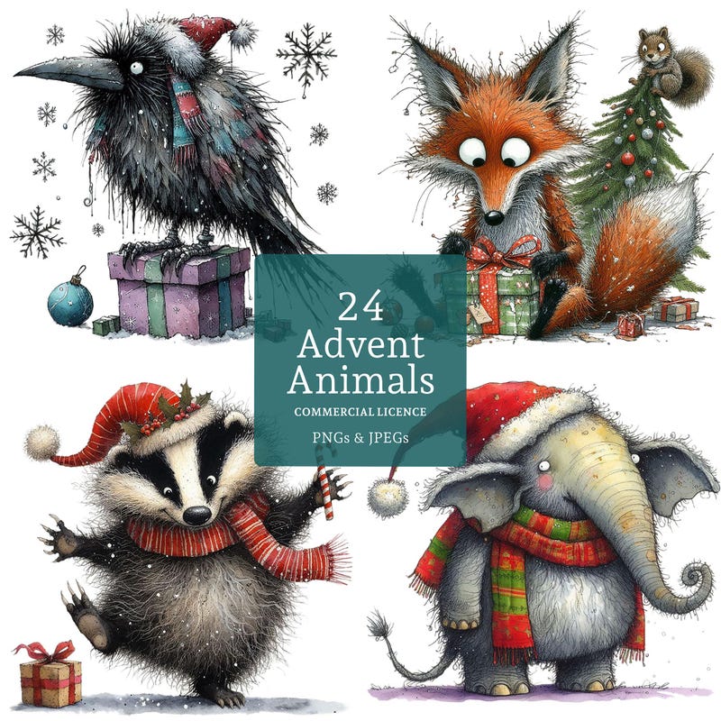Printable Christmas Advent Calendar Tags 24 Hand Drawn Doodle Style