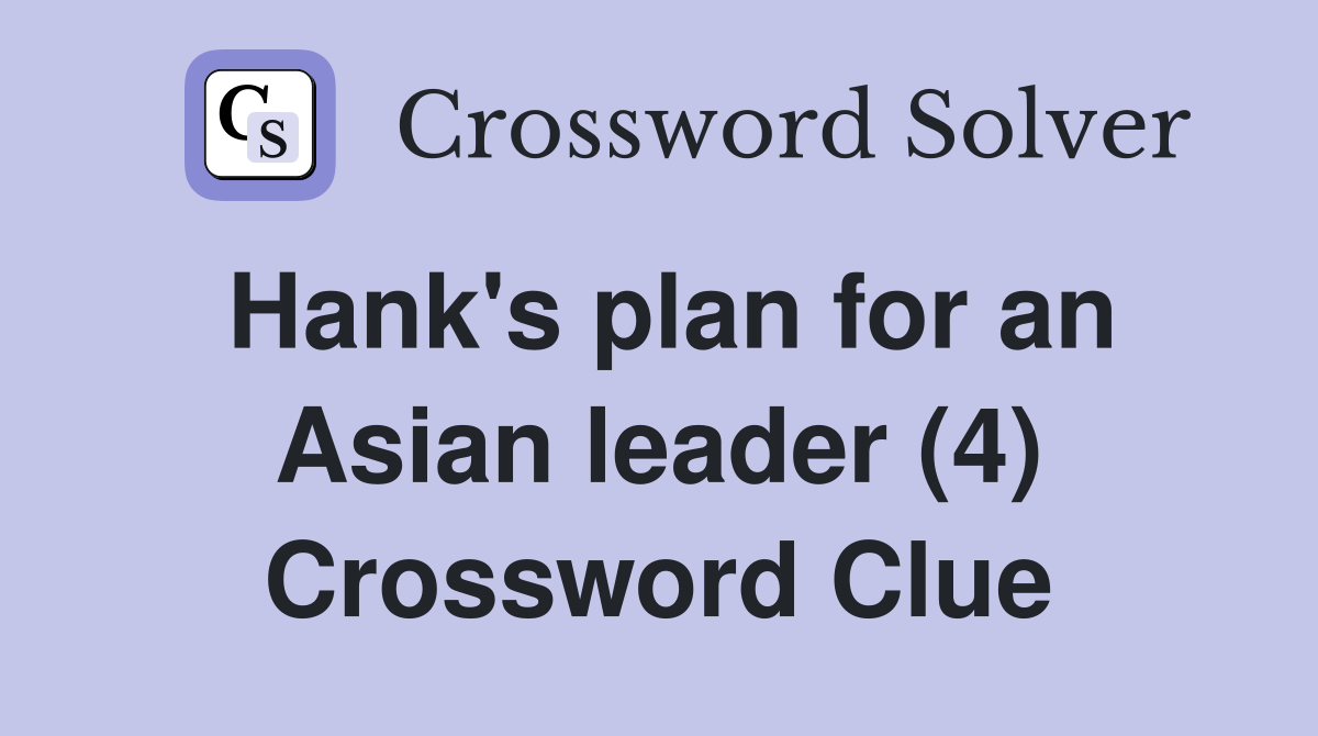Hank #39 s plan for an Asian leader (4) Crossword Clue Answers