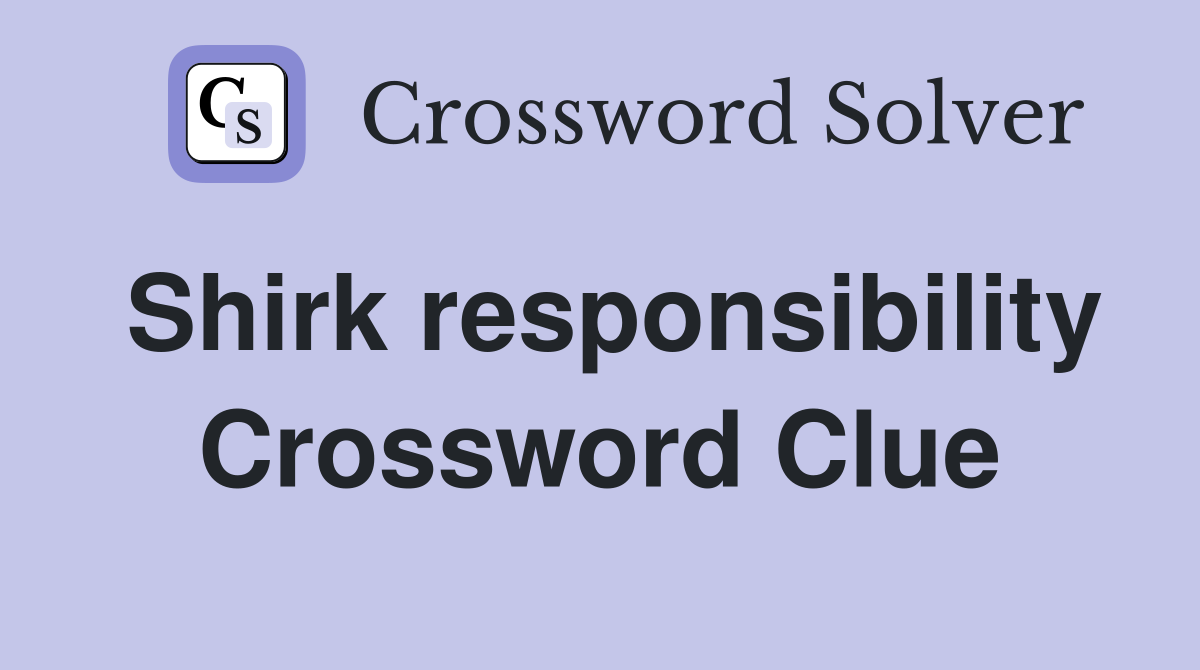 Shirk responsibility Crossword Clue Answers Crossword Solver