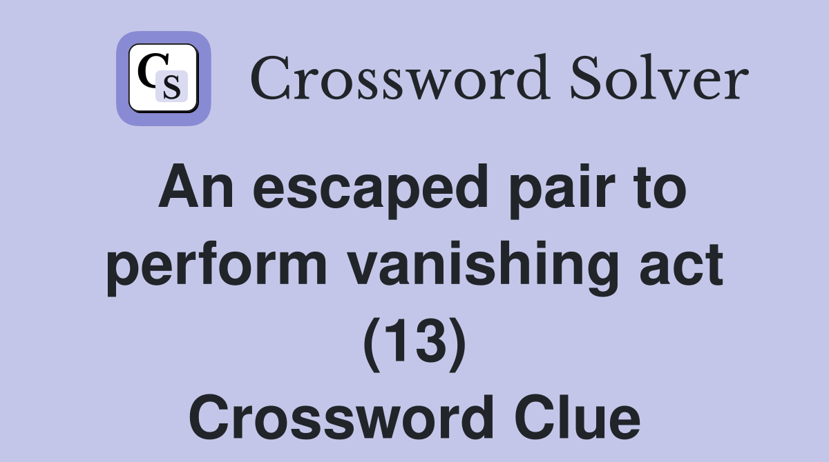 An escaped pair to perform vanishing act (13) Crossword Clue Answers