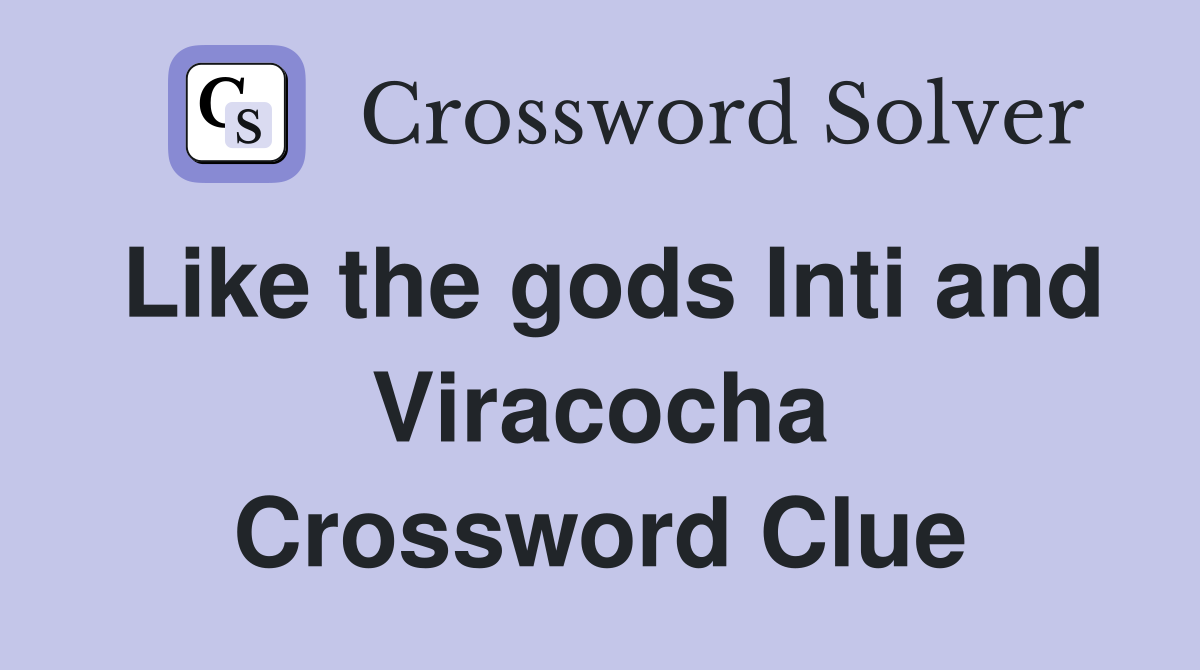 Like the gods Inti and Viracocha Crossword Clue Answers Crossword