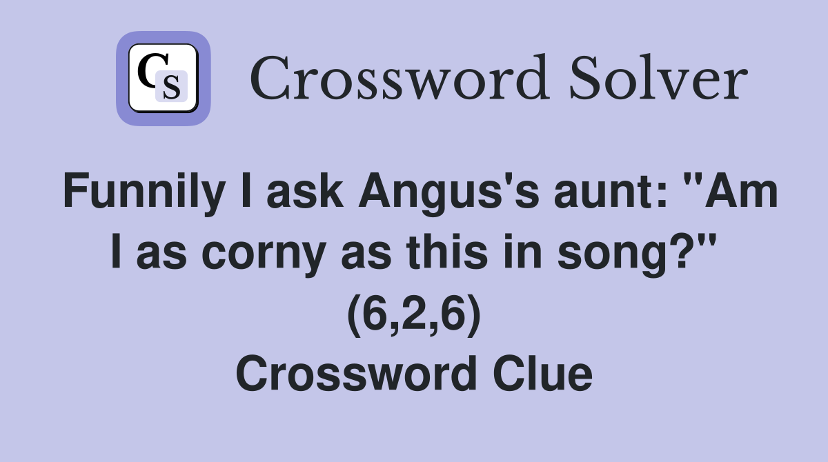 Funnily I ask Angus #39 s aunt: quot Am I as corny as this in song? quot (6 2 6