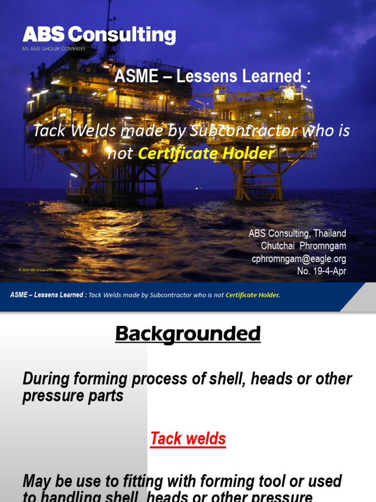 ASME Lessens Learned Tack Welds Made by Subcontractor Who Is Not