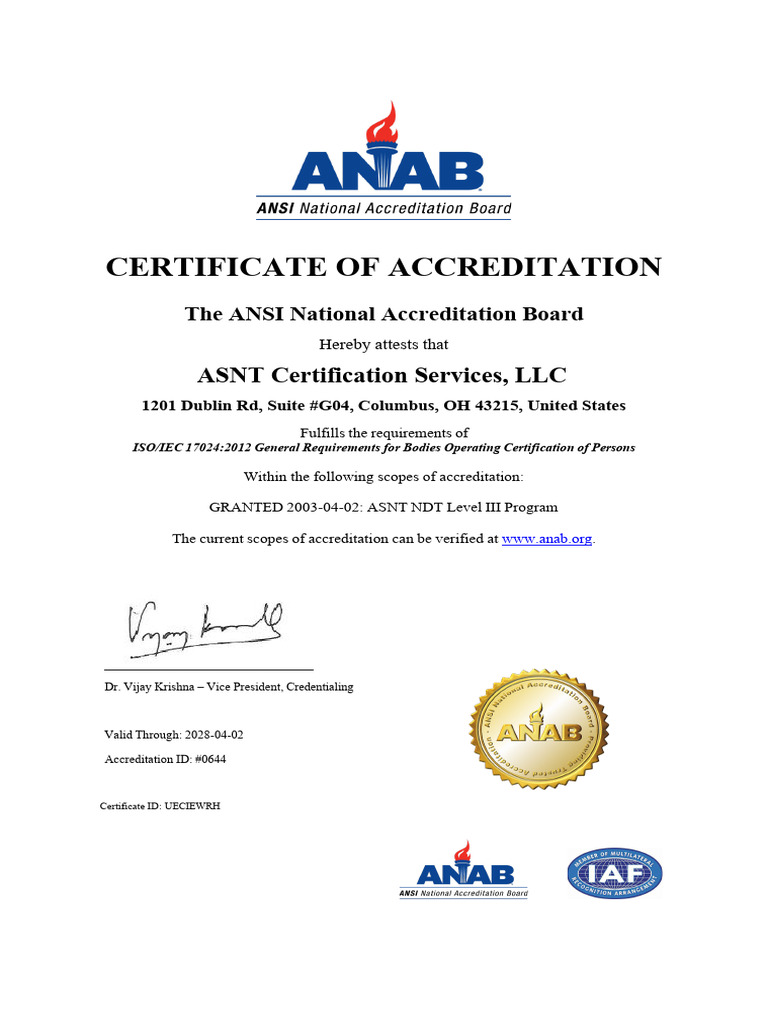 ASNT CERTIFICATE