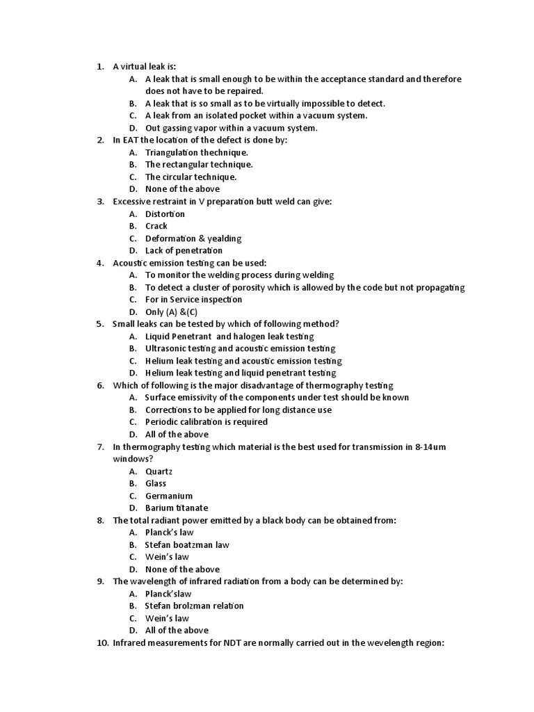 IRT Level 1 :: Infrared Thermography Testing MCQ s Part 1 Quiz