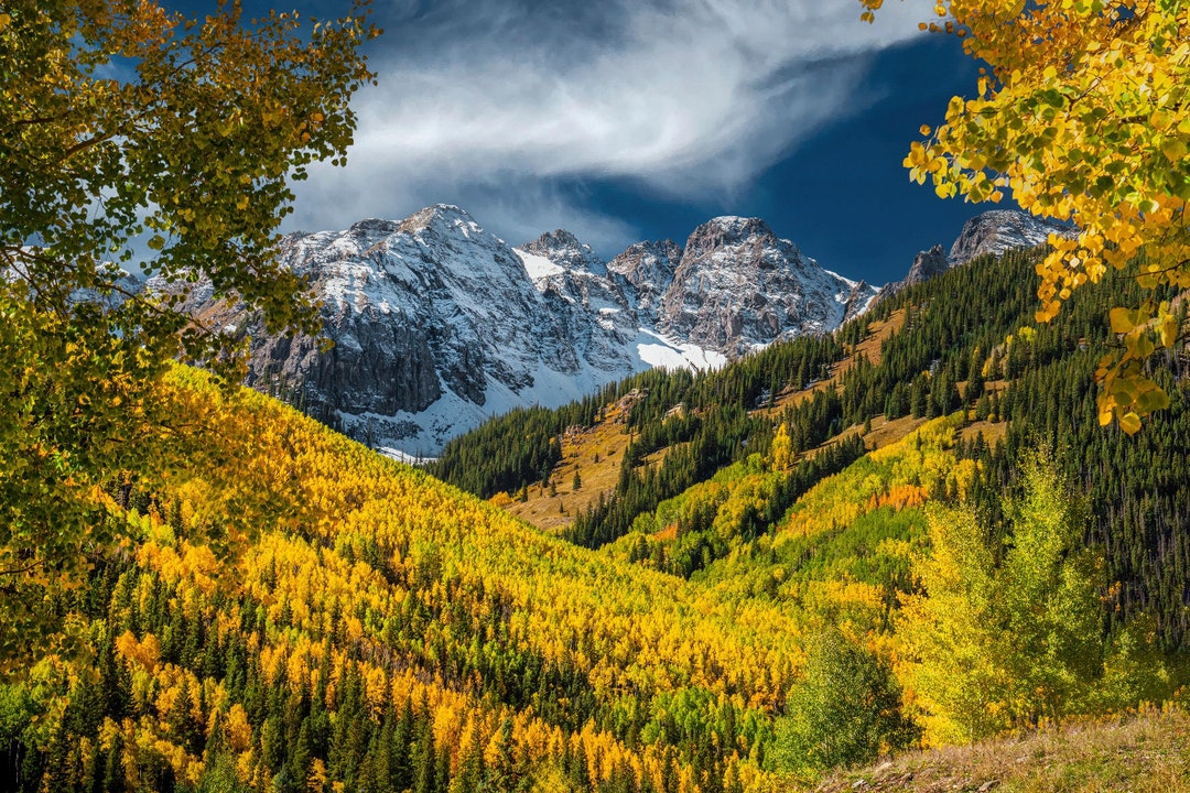 Aspen Fall Leaves Colorado Mountains Snow Wall Decor Canvas Prints