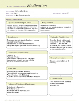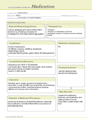 Aspirin Medication Overview: Active Learning Template ATI Module Studocu