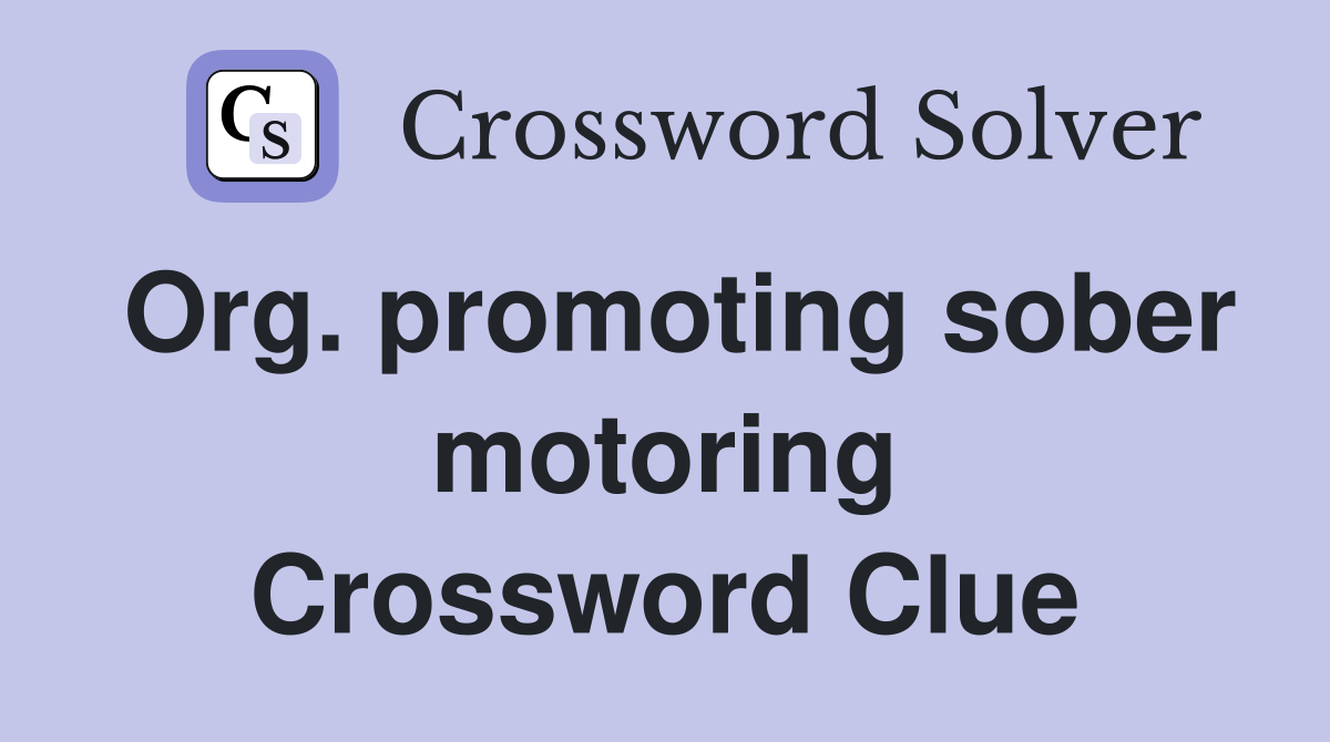 Org promoting sober motoring Crossword Clue Answers Crossword Solver