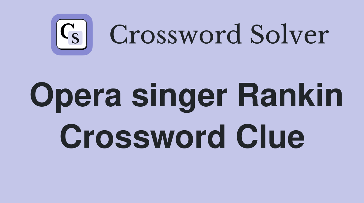 Opera singer Rankin Crossword Clue Answers Crossword Solver