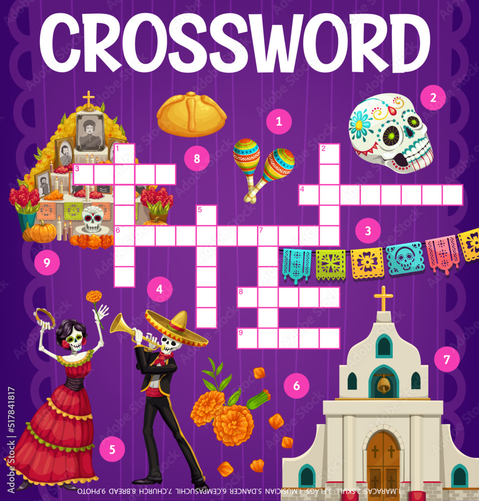 Dia De Los Muertos Mexican Holiday Crossword Grid Stock Vector