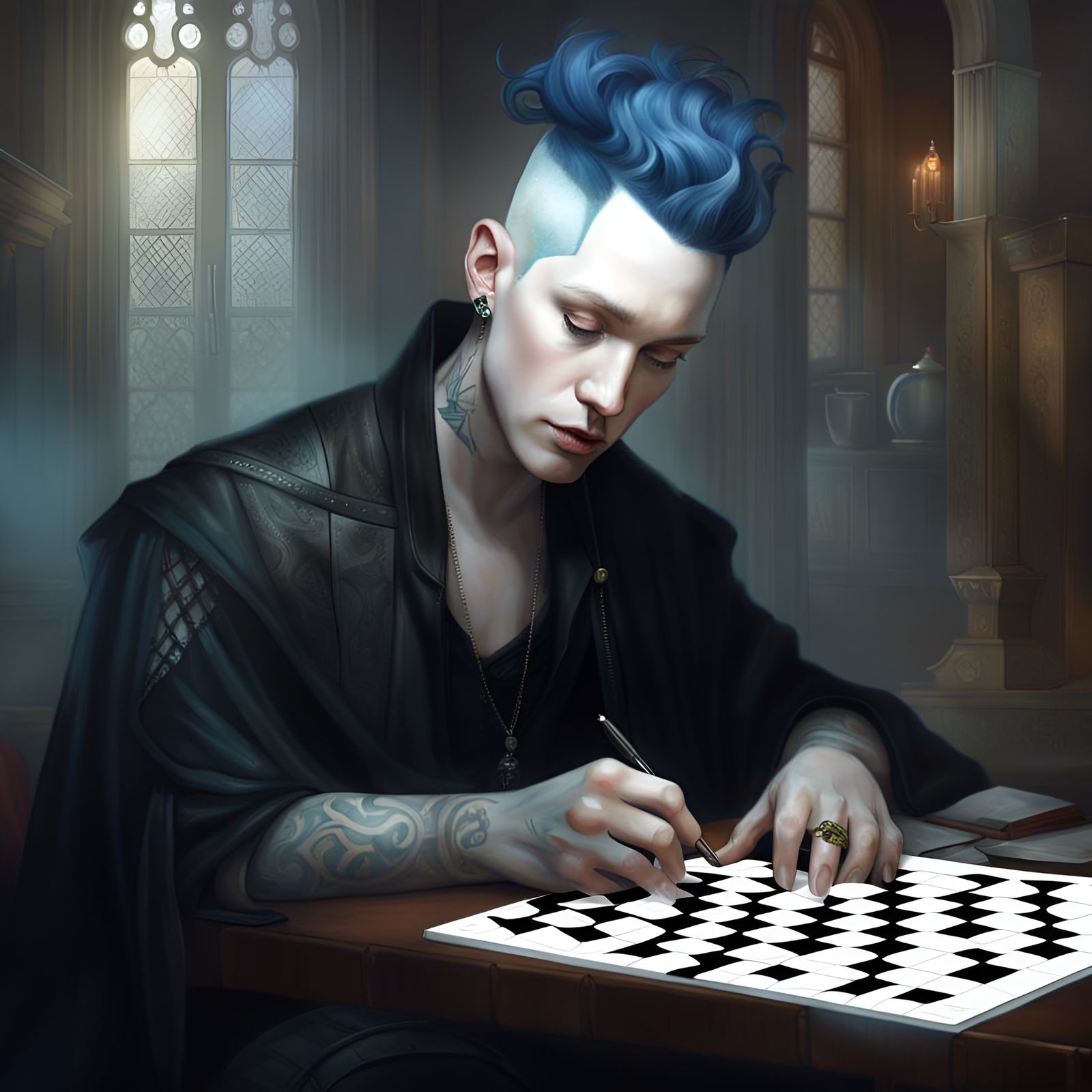 Metal Musician Completing Crossword Puzzle