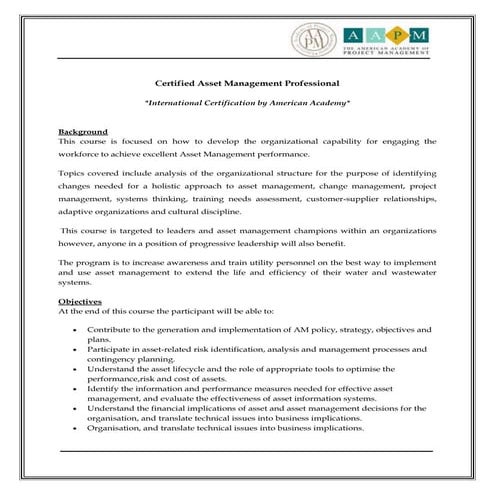 Here are some of the images for Asset Management Professional Certification that we found in our website database.