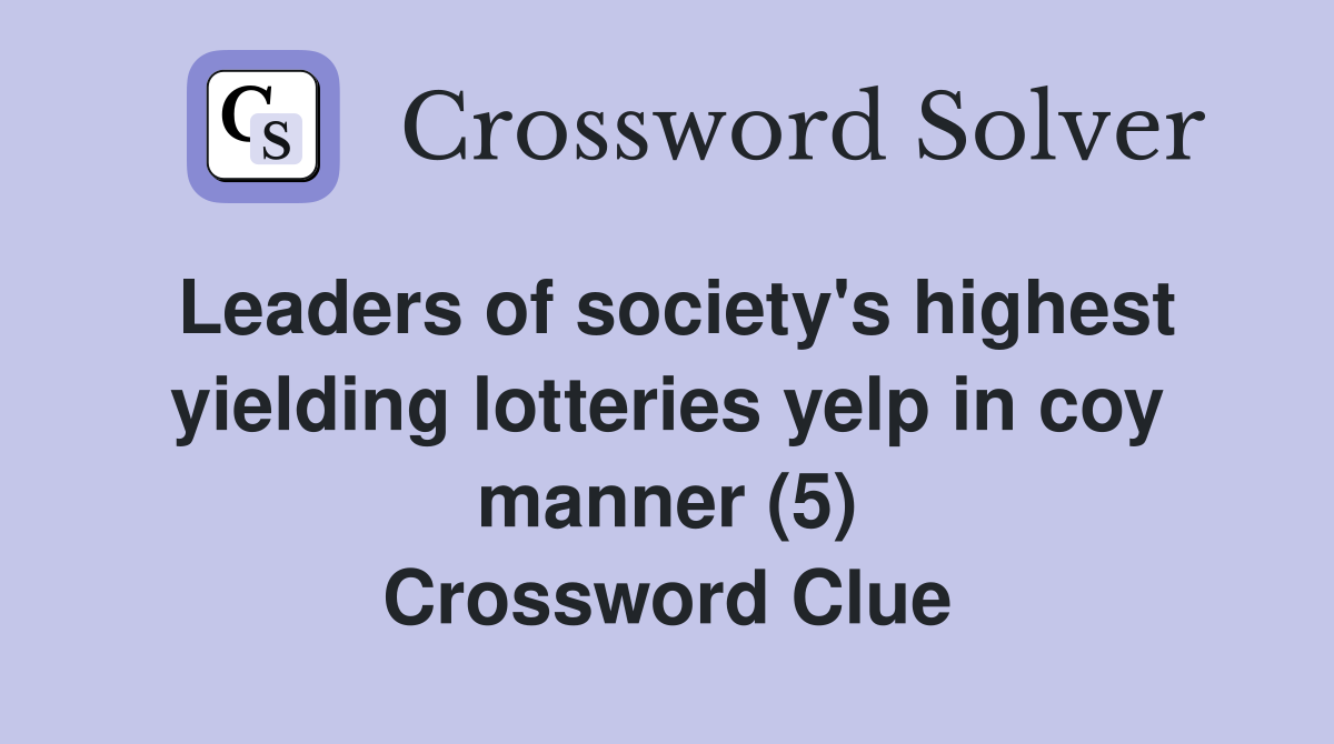 Leaders of society s highest yielding lotteries yelp in coy manner (5