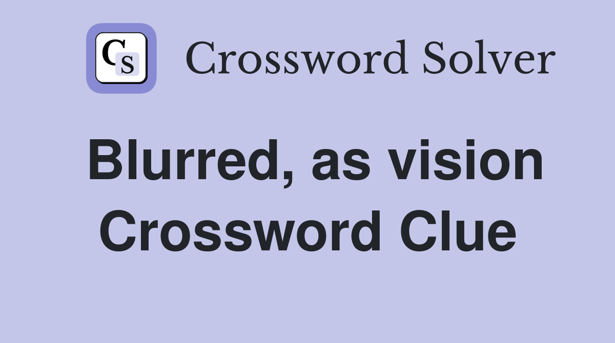 Blurred as vision Crossword Clue Answers Crossword Solver