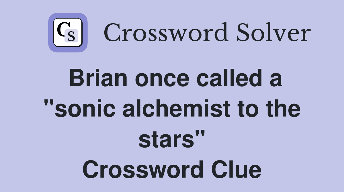 Brian once called a quot sonic alchemist to the stars quot Crossword Clue