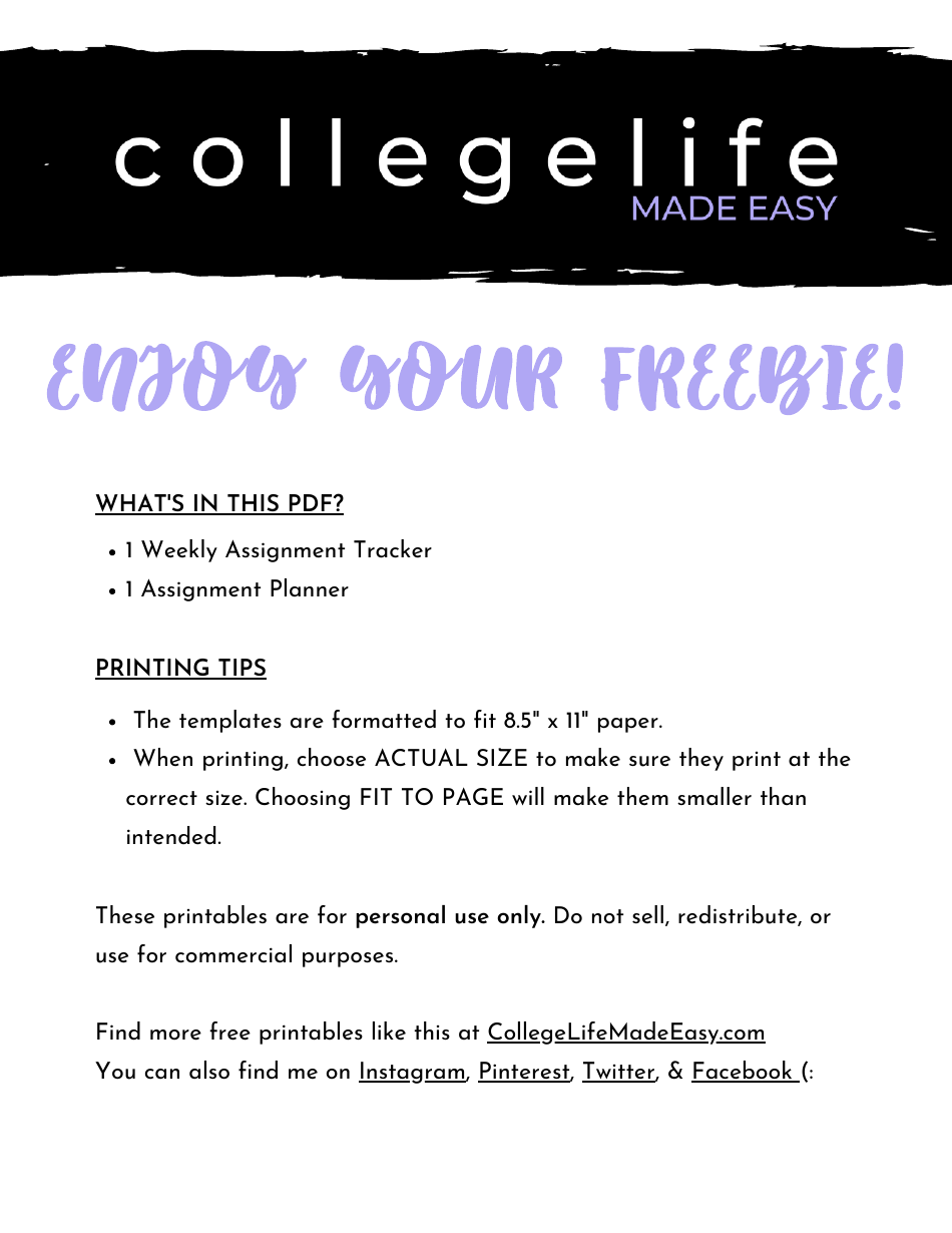 Assignment Planner Template Etsy