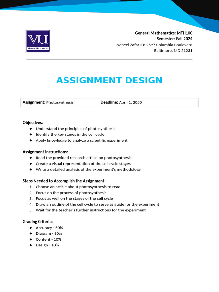 Assignment Design Template PDF