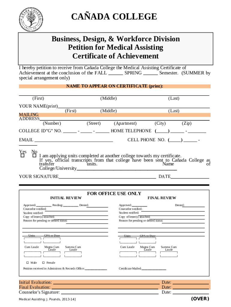 Medical Assisting Certificate of Achievement Doc Template pdfFiller