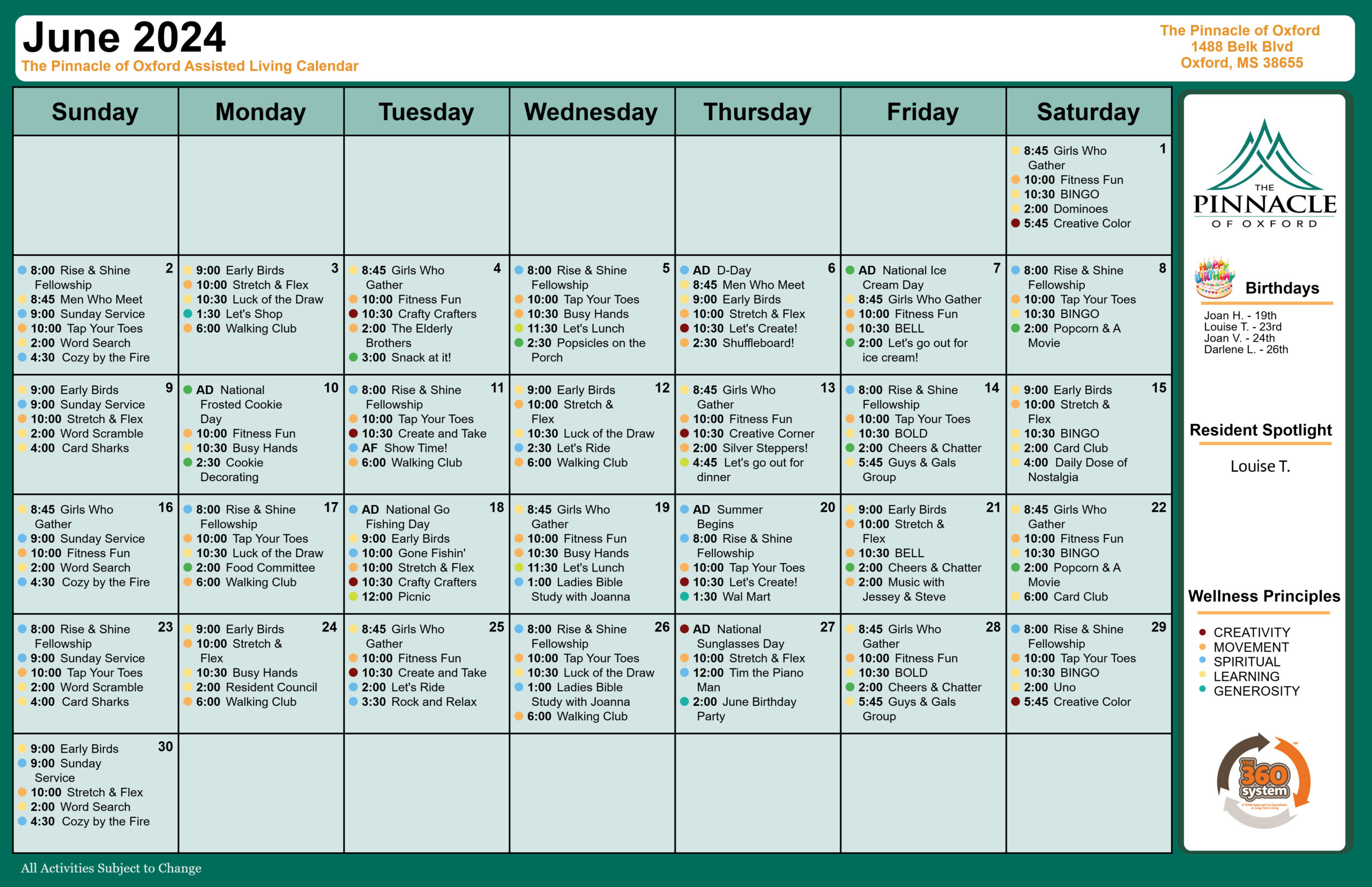 Somerset Assisted Living Calendar June 2024 Somerset Retirement Home
