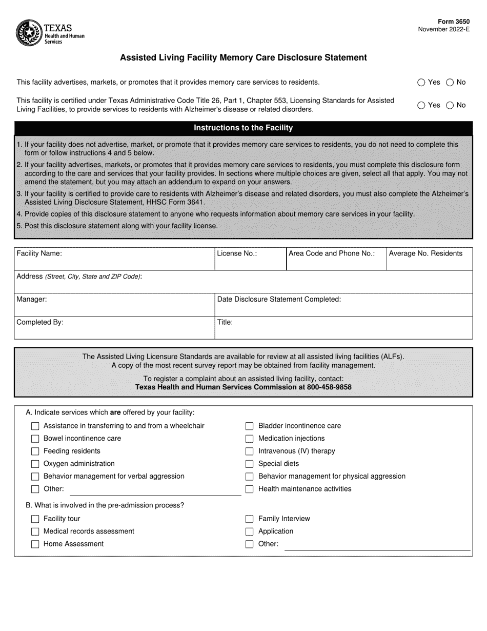 Form 3647 Download Fillable PDF or Fill Online Assisted Living