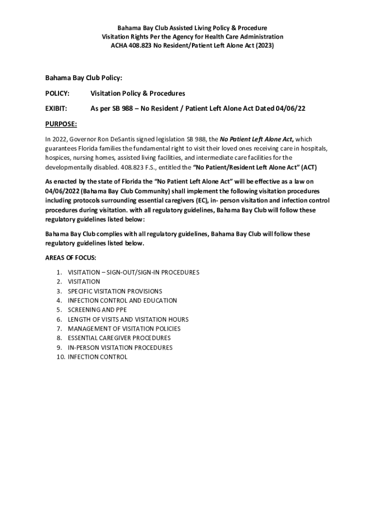 Fillable Online Bahama Bay Club Assisted Living Policy Procedure