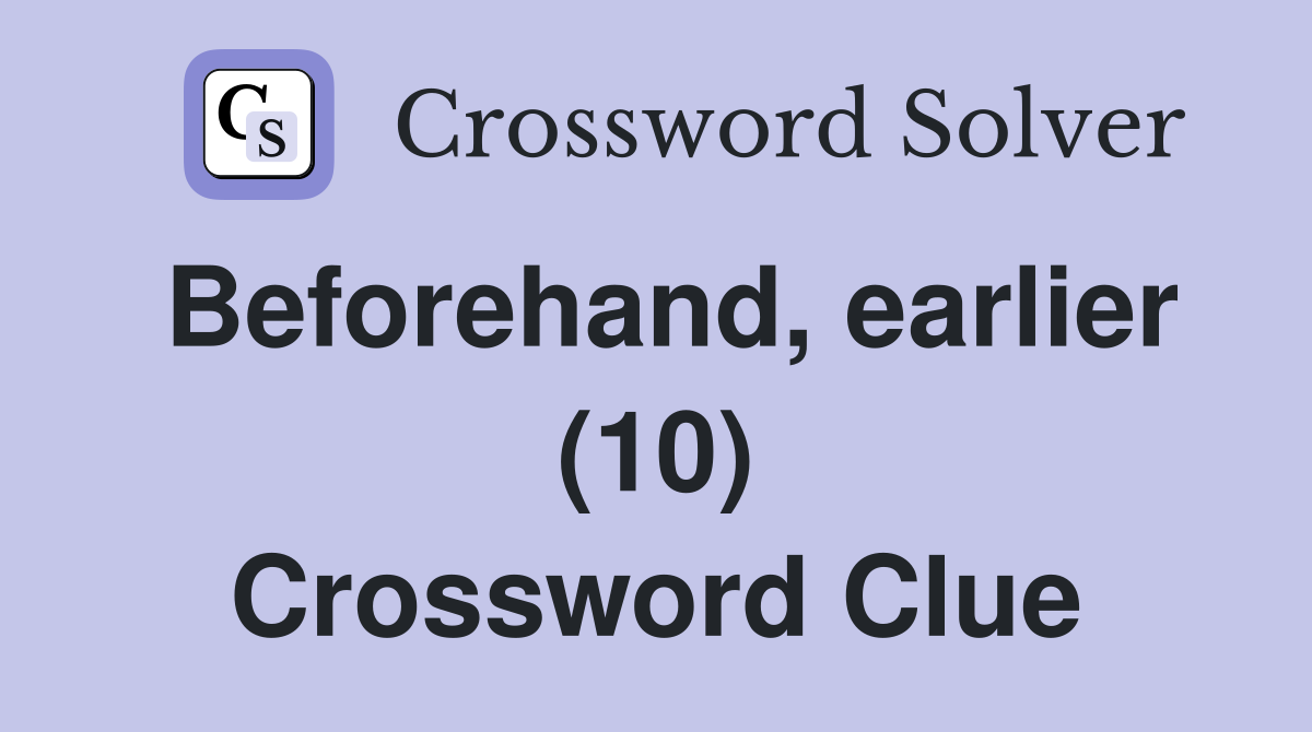 Beforehand earlier (10) Crossword Clue Answers Crossword Solver
