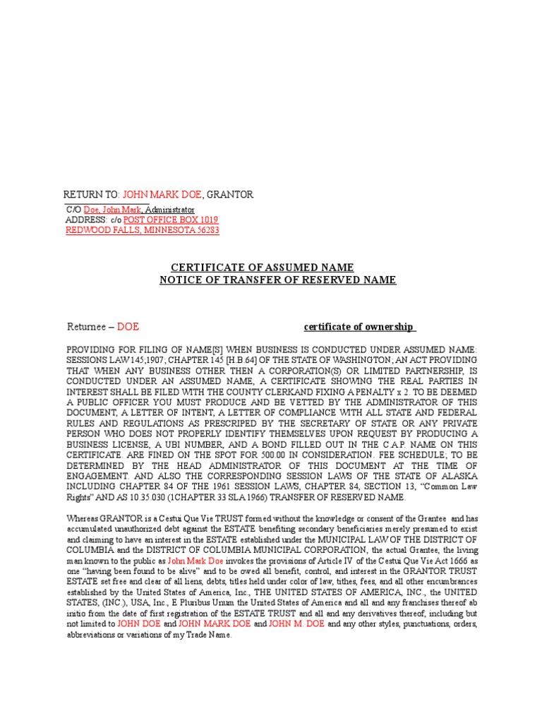 Certificate of Assumed Name Notice of Transfer of Reserved Name PDF