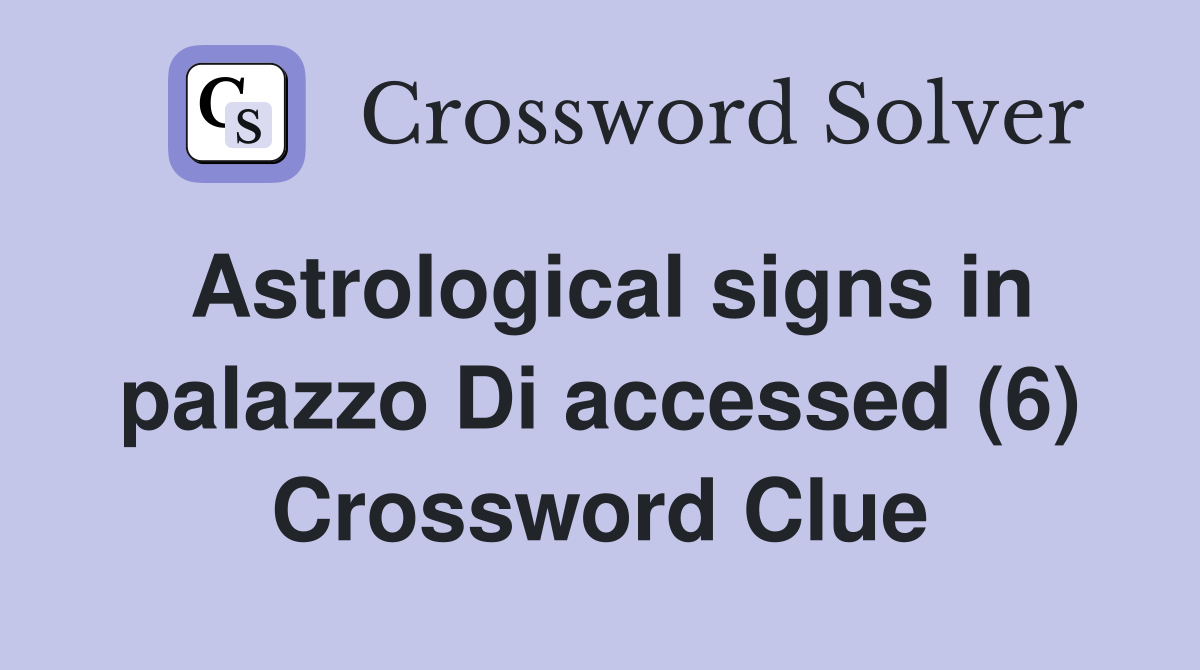 Astrological signs in palazzo Di accessed (6) Crossword Clue Answers