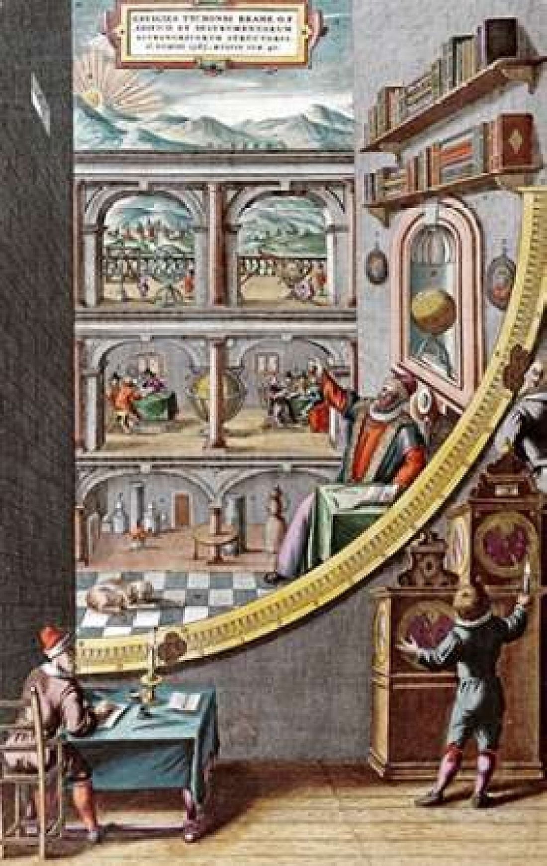 Danish astronomer Tycho Brahe (1546 1601) and his mural quadrant in