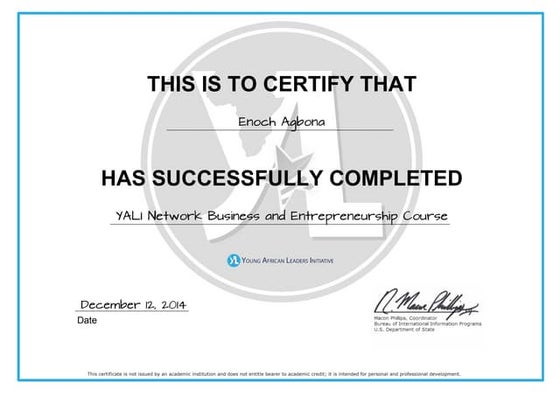 Civic Leadership YALI Certificate PDF