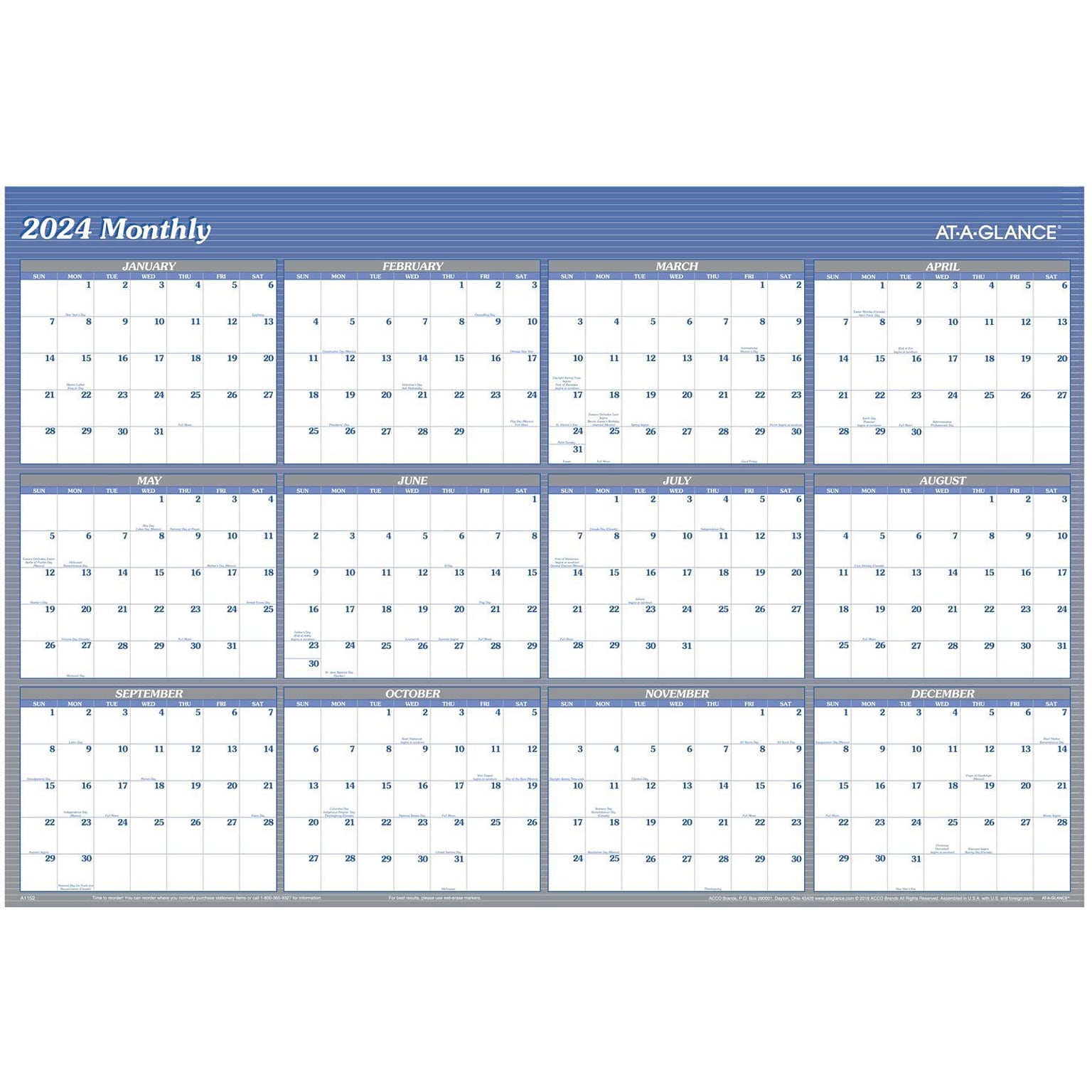 At A Glance Wall Calendar Dry Erase 2024 Blank Calendar 2024