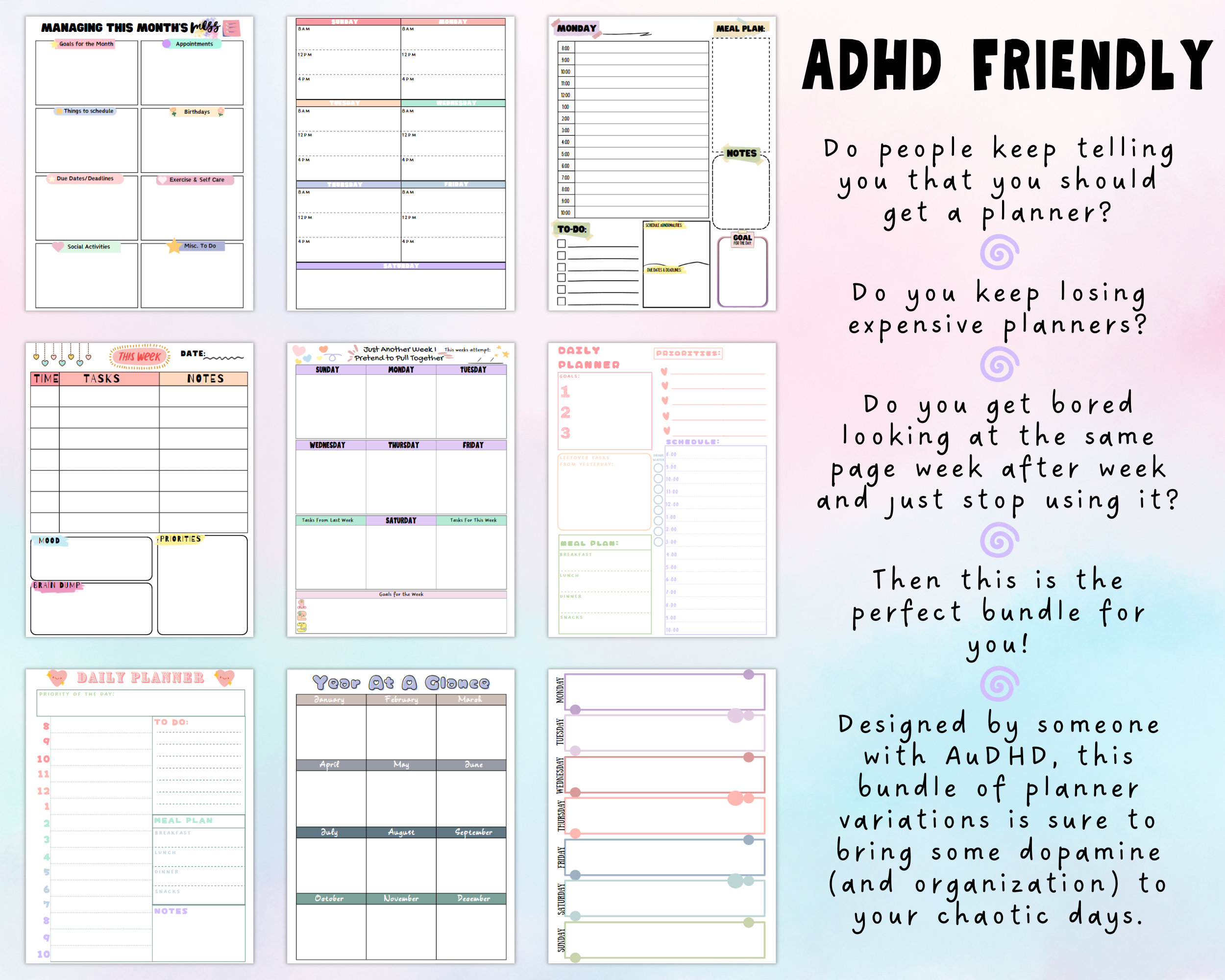 ADHD Planner Printable Bundle 2024 Monthly Calendar ADHD Daily Weekly