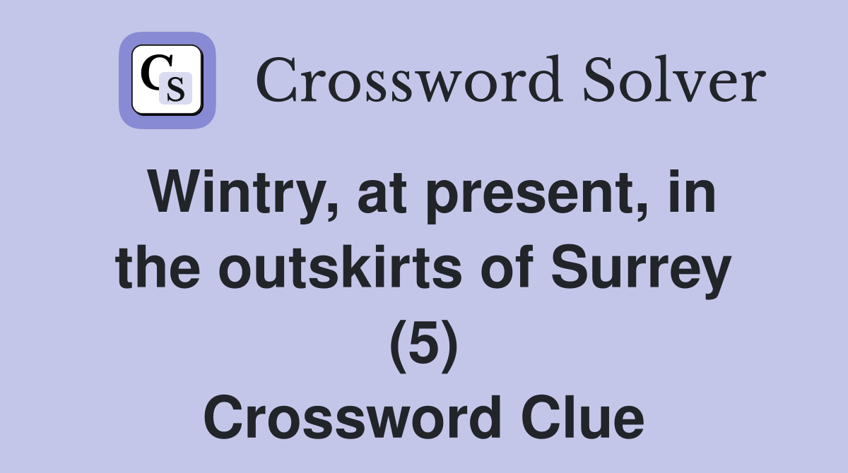 Wintry at present in the outskirts of Surrey (5) Crossword Clue