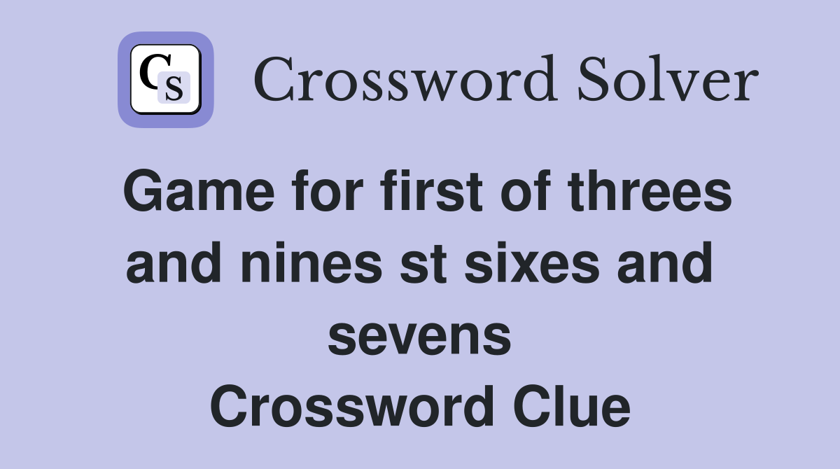 Game for first of threes and nines st sixes and sevens Crossword Clue
